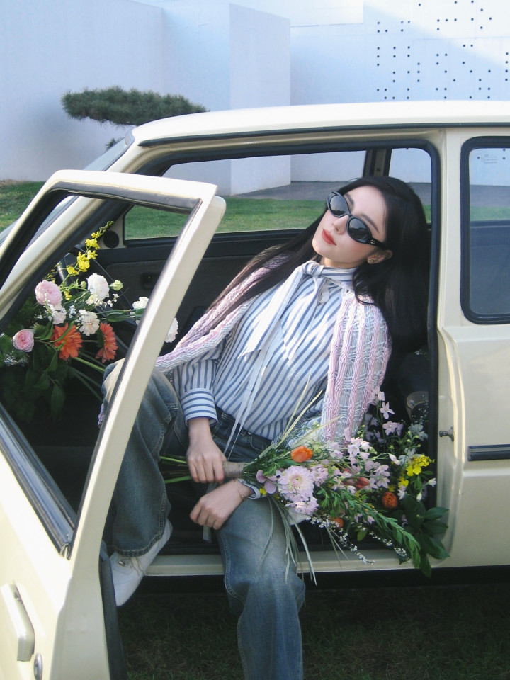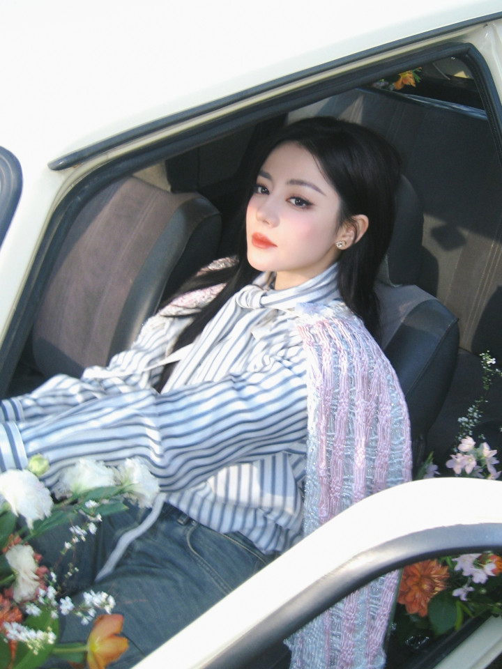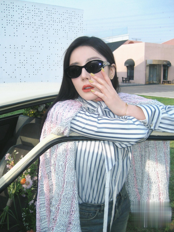 > OD体育app 迪丽热巴春日好意思拍, 身穿条纹衬衫搭配忠实披肩, 芳华不羁