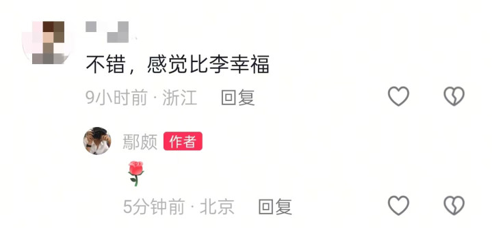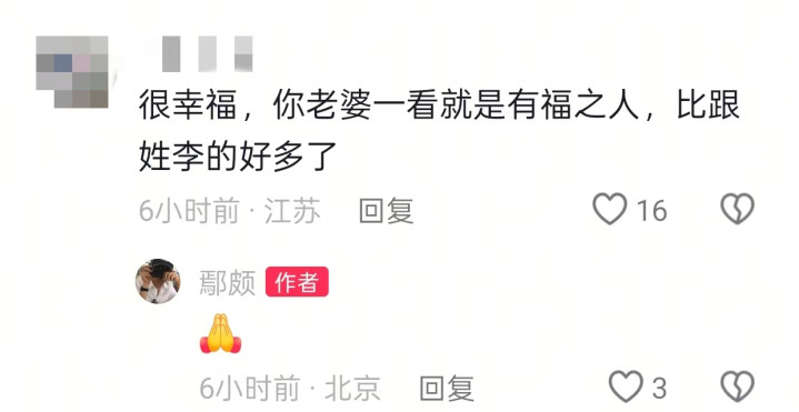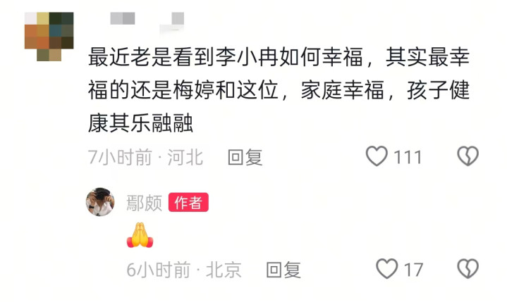 他在4月15号曾发了一段和妻女的视频,大约是因为近期李小冉热度的原因,驳倒区启动有东谈主拿起李小冉,有东谈主说他比李小冉幸福,鄢颇径直回复一朵玫瑰花。