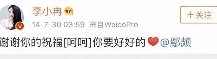 仅过了一天,李小冉就感谢了鄢颇的祝愿。