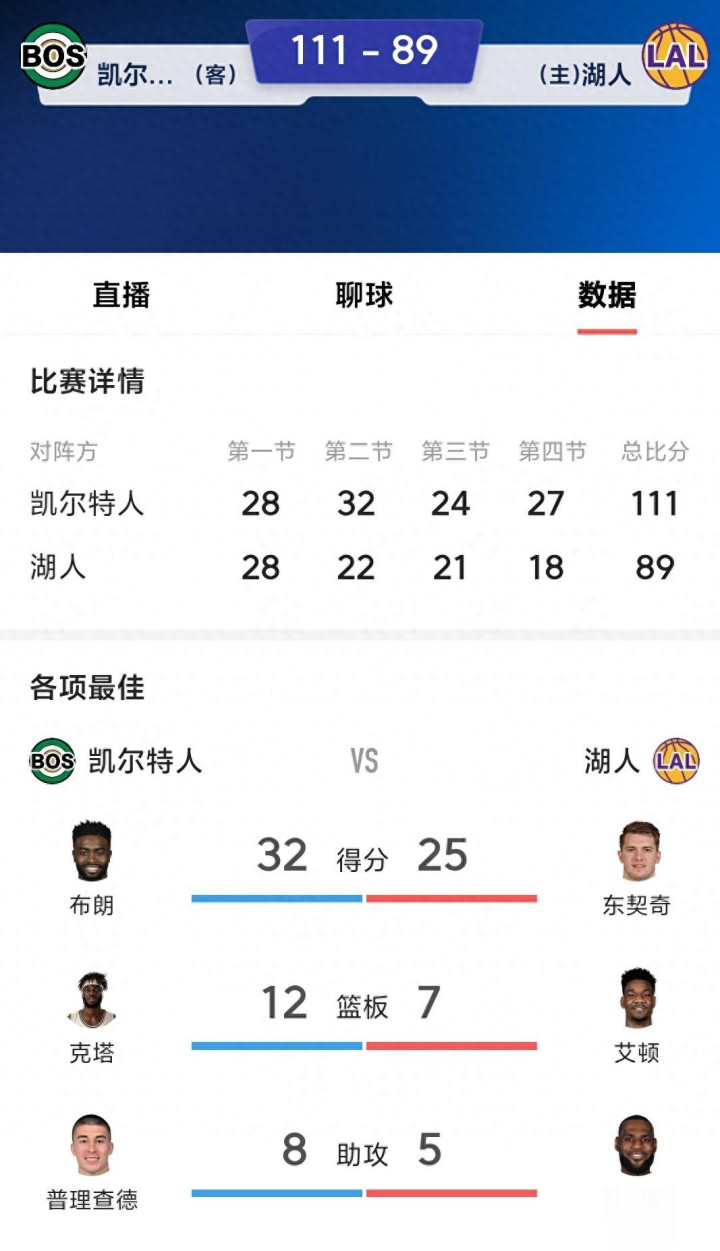 【一】赛后老詹通例赛数据榜: