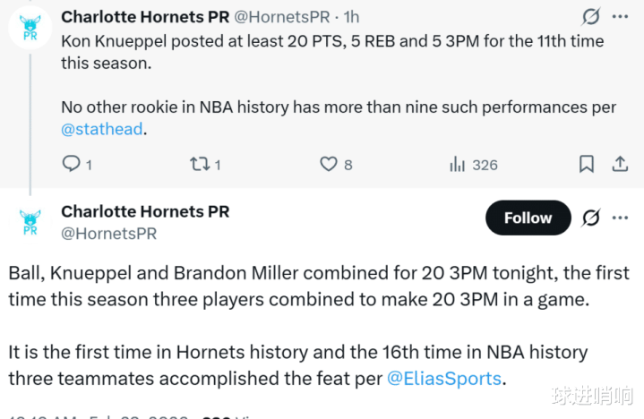 近14战11胜,黑马黄蜂合手续暴走!中枢三球状况回暖轰37+8+7+10三分万能数据创生存新高,黄蜂新三巨头联手破队史记录。