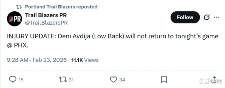 阿夫迪亚开局后不久伤退,开发者官方晓示其因腰部受伤退出本场比赛。