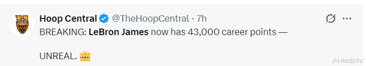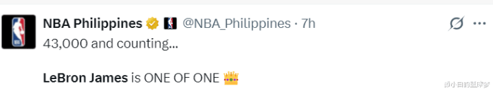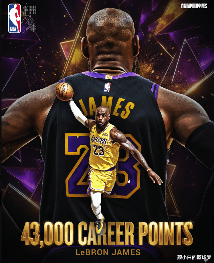 在勒布朗-詹姆斯完成这43000分里程碑后诸多好意思媒纷纷为41岁的勒布朗戴上金冠,因为这是NBA历史上独一的存在。就连NBA官方齐为勒布朗戴金冠。