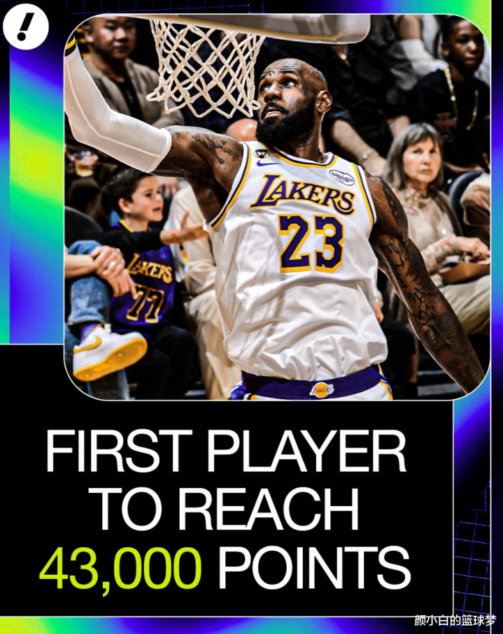 这场比赛亦然勒布朗-詹姆斯两个里程碑之夜,其一是勒布朗完成43000分,其二是历史第二位生活出战1600场+的球员;只能惜最终勒布朗输掉了比赛,只能算里程悲。