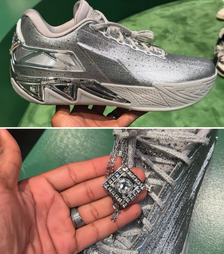 周日下昼,全明星工夫库里与约内斯库、欧文一同测验的相片和视频流出:他上脚了安踏怒潮5二代,鞋跟位置显著印有库里品牌的Logo。