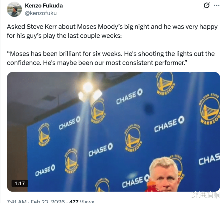 除了霍福德以外,另外别称首发穆迪也交出神奇进展,全场16中9,三分9中4,拿下23分7板5助1抢断,在四大中枢缺席的情况下,陆续饰演最踏实的得分点。