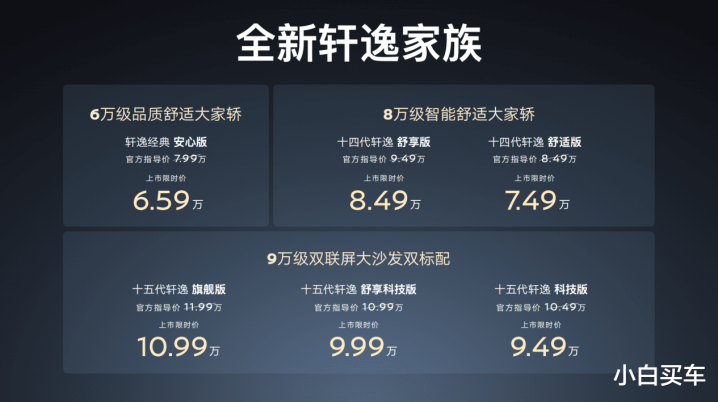 十五代轩逸上市后,与轩逸·经典、十四代轩逸联袂打造全新轩逸家眷,称心中国度庭各类化需求。其中,6万买轩逸・经典,品性隧谈,可靠又舒心,定心之选;8万买十四代轩逸,OD体育app官网兼顾智能科技与驾乘质感,舒心之选;9万买十五代轩逸,双联屏大沙发双标配,界说智能家轿新高度,机灵之选。关于中国度庭来说“选家轿,必有一款轩逸,允洽你!”