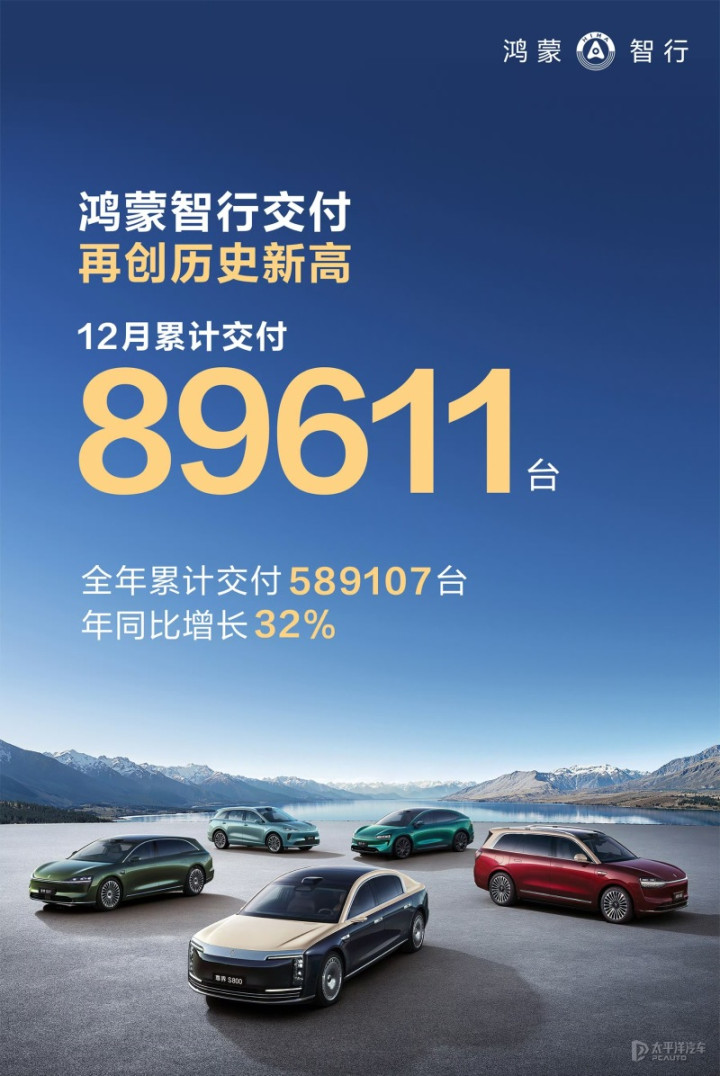 往日2025年,鸿蒙智行应该是被公共探讨最多的一个品牌,市集声量和热度一度盖过小米和雷军,市集反应也荒谬积极,全年累计销量589,107辆,同比增长32%,单月销量最高接近9万辆,稳居新势力第一,且成交均价高达39万元,稳居高端新能泉源部地位。