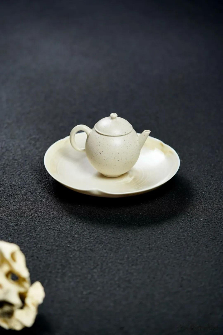 白玉段泥,属段泥系,矿料打磨成浆后泥色偏白,有一层淡淡的暖意,像羊脂,又比羊脂多几分"呼吸感"。段泥透气性好,沏茶不夺味,养起来激情会逐渐从素白走向糯黄的暖调——这个进程很快,快到上手第一天你就能察觉:壶面上偶而多了一层淡淡的光。