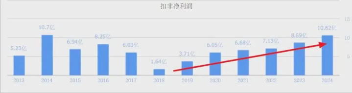 法拉电子是薄膜电容器大家龙头,这东西变压器、逆变器里都得用。扣非净利润从2013年2.73亿增长到2024年10.24亿,雷同稳步新高。