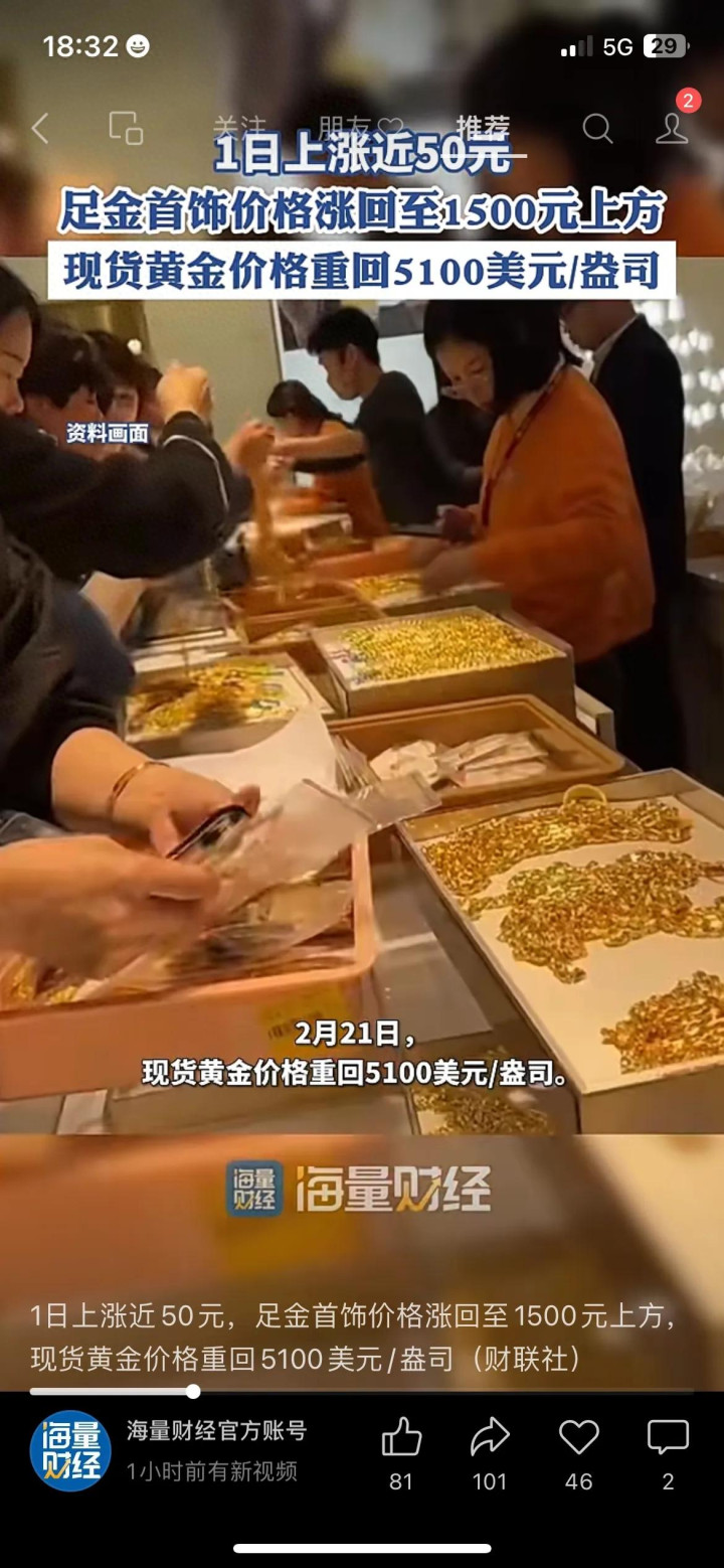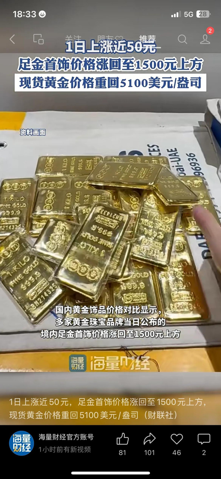 临了问公共一个扎心的问题:你手里的黄金,是准备传给儿媳妇的,照旧准备下周就卖掉的?评述区见。
