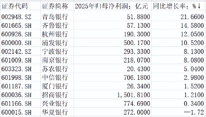 适度2026年2月12日,已有12家上市银行公布了2025年岁迹快报,除中原银行,其他各家净利润均终了正增长:青岛银行的归母净利润同比增幅跨越20%,皆鲁银行、杭州银行、浦发银行的归母净利润增幅同比也在10%以上。而中原银行归母净利润则比2024年末下降1.72%。