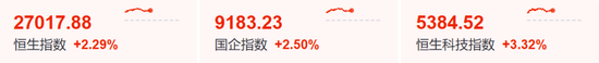 2月23日上昼,港股阛阓高开高走,主要指数集体走高,恒生科技指数盘中一度涨超4%。截止午间收盘,恒生指数大涨604.53点,涨幅为2.29%;恒生科技指数涨3.32%,恒生国企指数涨2.5%。