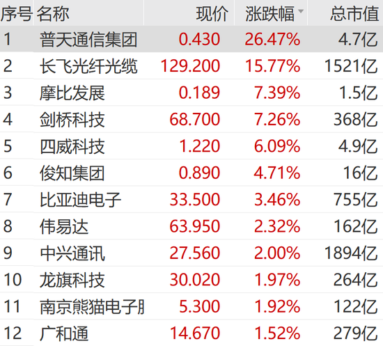 2月23日上昼,港股通讯耕种板块走高。截止午间收盘,普天通讯集团涨超26%,剑桥科技、比亚迪电子、中兴通讯、龙旗科技等均有清亮涨幅。