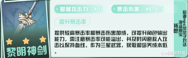 裁叶萃光 / 静水流涌之辉:如若暂时抽不到毕业火器,这两把双暴词条较高的火器也能拿来过渡,只须圣遗物稍许补一下属性,输出也不会拉胯~