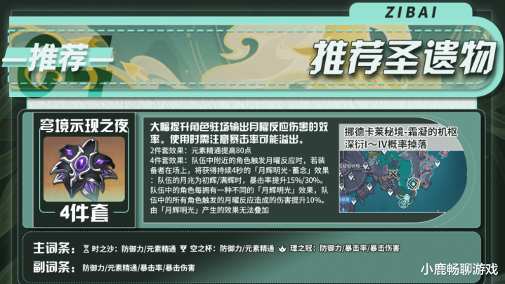 用专武或有乐御帘切:火器自己照旧提供了高额暴伤,圣遗物重心堆暴击率,最佳搭配 “穹境示现之夜” 套装,进一步进步月结晶伤害。