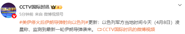 以色列军方当地时辰今天(4月8日)凌晨称,