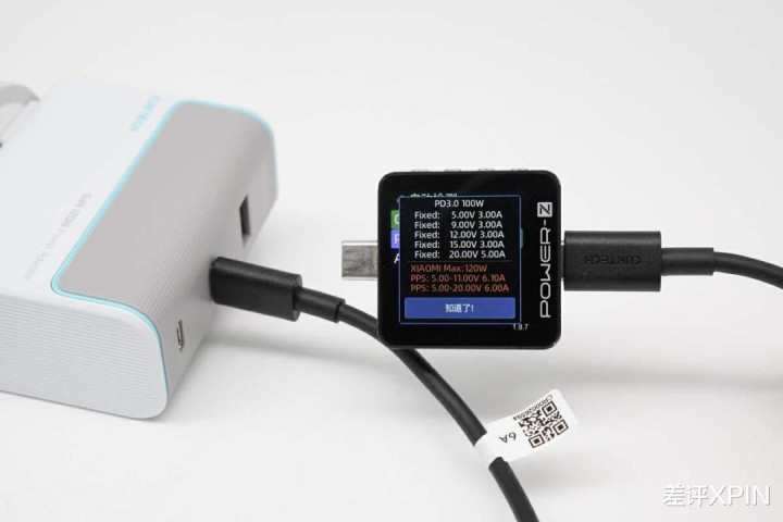 充电头网作念的酷态科充电器的合同检测,临了一滑代表该充电器支捏 5 - 20V ,6A 的 PPS 档位
