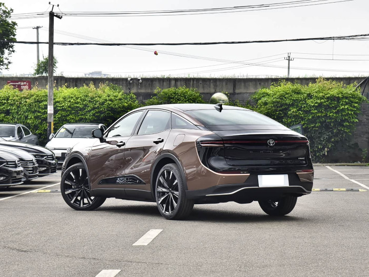 再来看车身侧面部分,身侧面是王冠SportCross的精髓方位。它遴荐溜背式轿跑探究,车顶线条从A柱洞开延长至C柱,合作1840mm的宽体车身和1540mm的低矮车高,营造出轿跑般的清楚感。 腰线从前翼子板一直延长至后车门,了得的曲面探究增强了肌肉感,而侧裙的玄色点缀则提高了视觉线索。 车身尺寸为4980mm×1840mm×1540mm,轴距达2850mm,在同级别中属于主活水平,但短轴探究更稳当驾驶天真性而非空间最大化。 这种跨界造型既兼顾了SUV的通过性,又融入了轿跑的优雅,使其在城市谈路中显得相称详确。