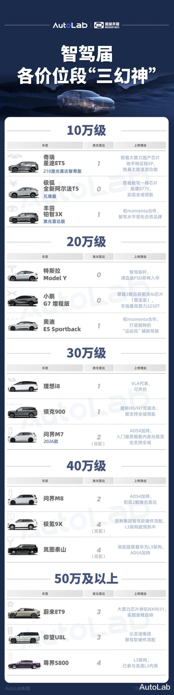 智驾不再是少数破费者独享的科技功能,现如今每个价位段都有全球能选出的万能型选手。