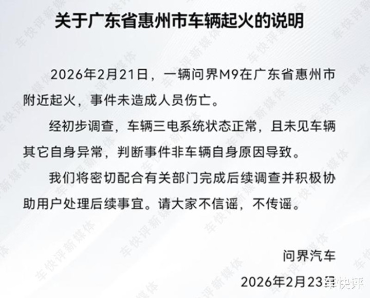 对了对于近日广东惠州发生的问界M9动怒一事,问界汽车官方还是进行了正面复兴,称车辆三电系统气象日常且未见其他自己格外,会积极勾引干系部门完成造访和协助用户经管后续事宜。