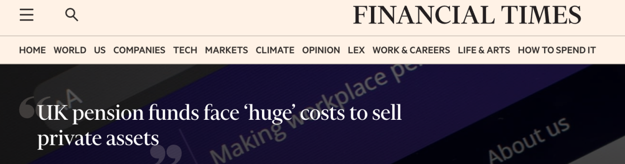 【专家网财经详细报谈】据英国《金融时报》报谈,英国养老基金被提醒,淌若试图抛售其私募市集财富,可能濒临“大齐”老本。此前,行业监管机构提醒部分养老基金经营对难以出售的投资高度依赖。