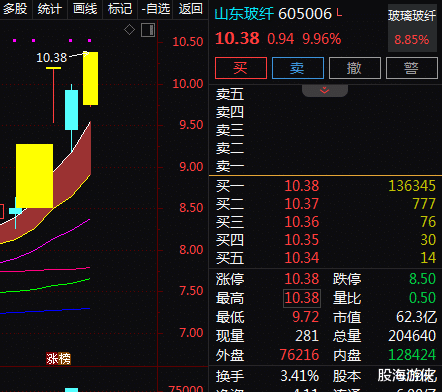 从时刻面上来看,山东玻纤(605006)该股在板块的带动下,走出了4天3板!均线呈现多头罗列,MACD有链接上扬的能源,主力资金净流入8184.3万元。