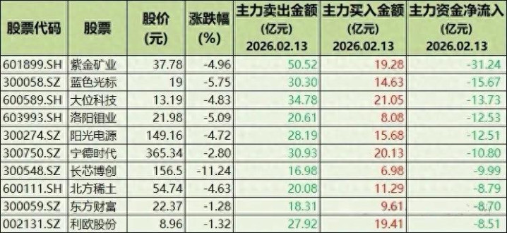 节前终末一个交游日共有51只股票主力资金净流出卓著2亿元,所有流出金额高达200多亿!紫金矿业一天就被主力卖了31个亿,股价跌了近5%。
