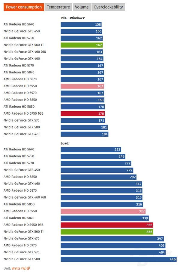 HD 6950的功耗水和善560 Ti基本在澌灭层次,齐是350W左右,照旧很是齐备的,毕竟芯单方面积大得多。